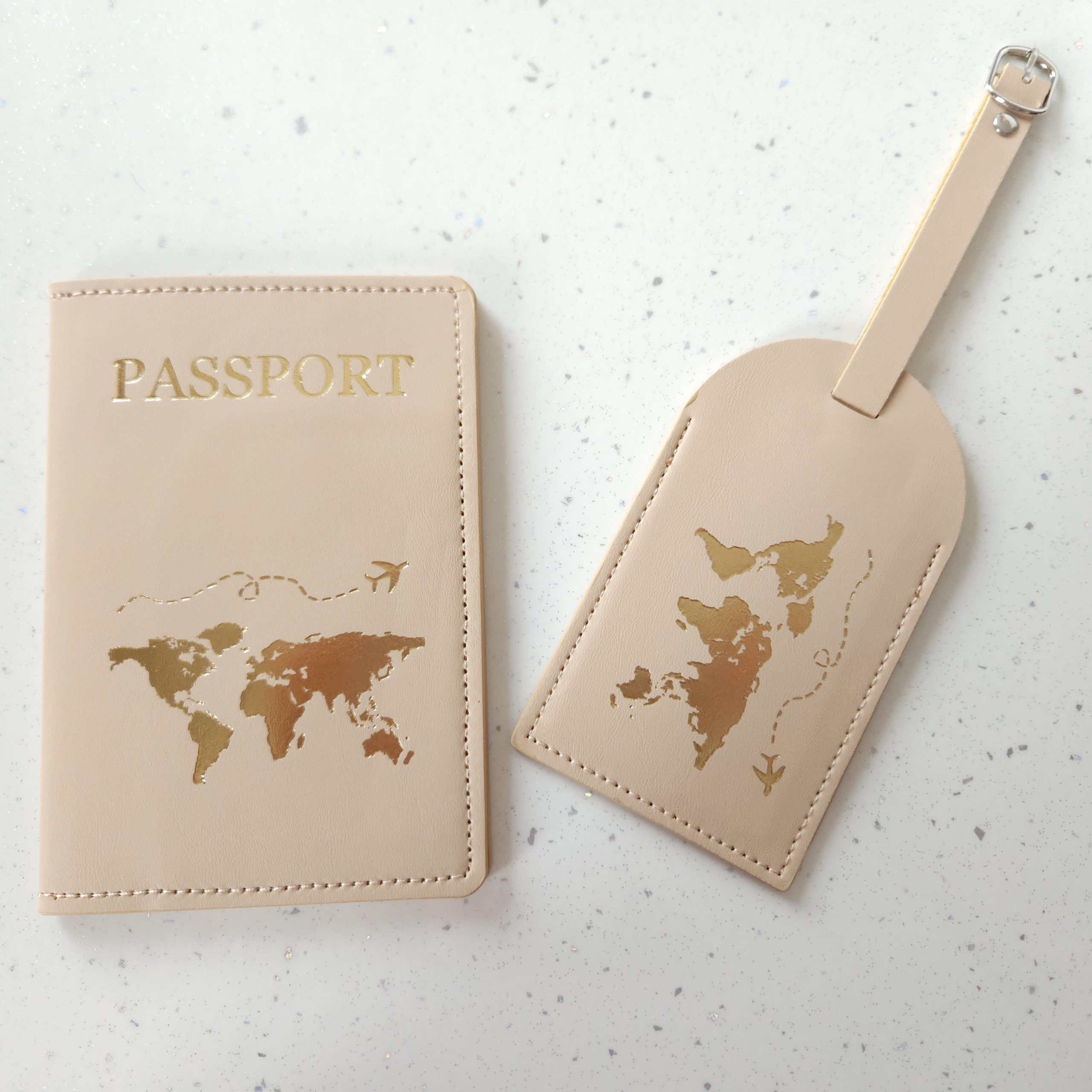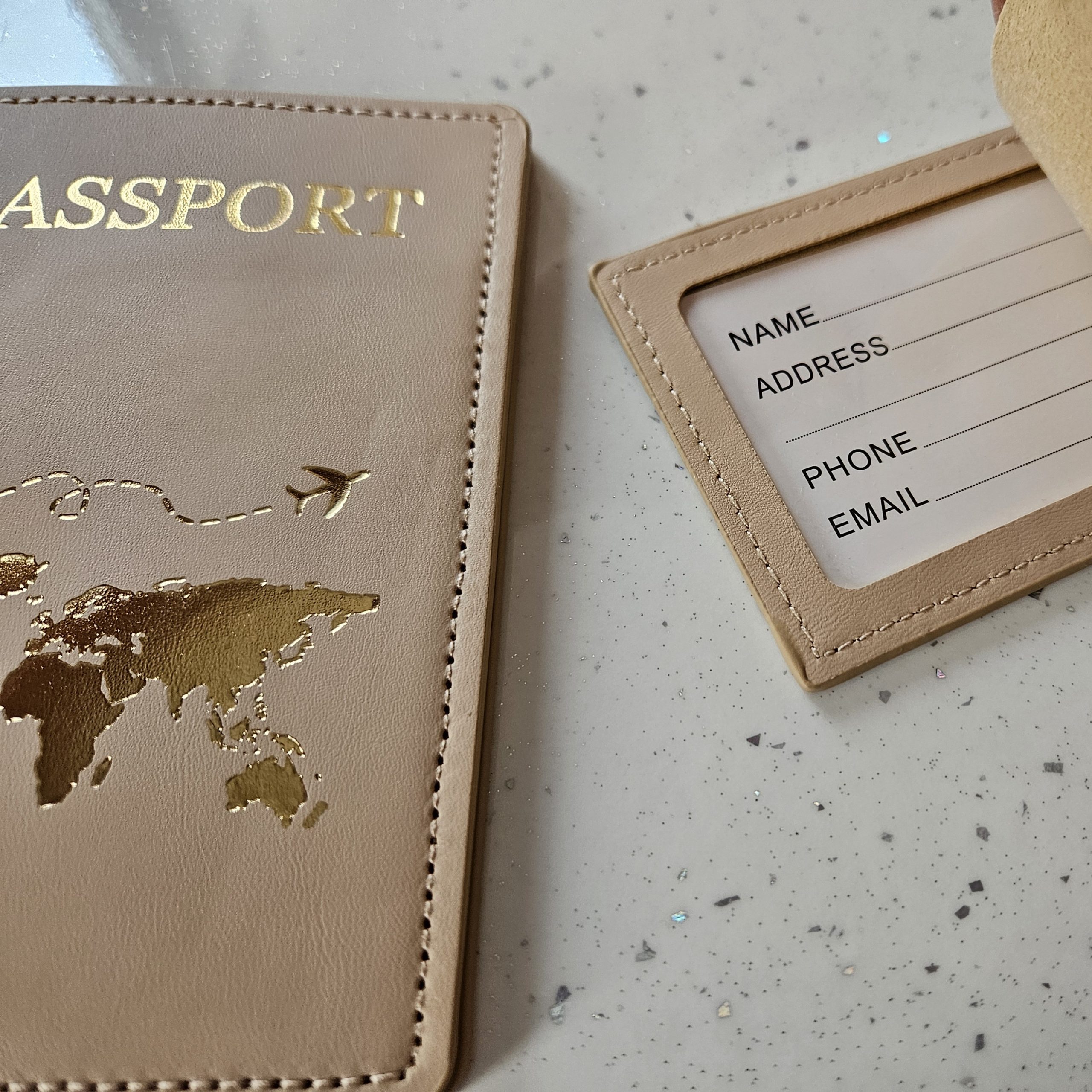 Комплект от кожено калъфче за паспорт и кожен етикет за багаж