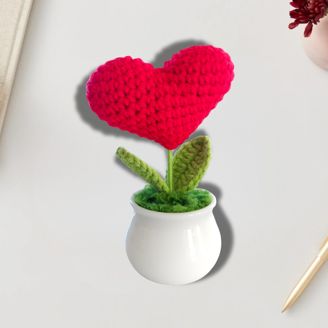 Ръчно изплетено сърце в саксия.